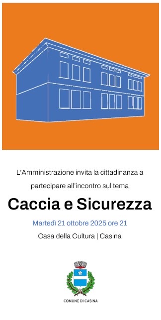 L’Amministrazione comunale invita la cittadinanza a partecipare a unincontro dedicato al tema della sicurezza durante l’attività venatoria martedì 21 ottobre 2025 alle ore 21 in sala civica.