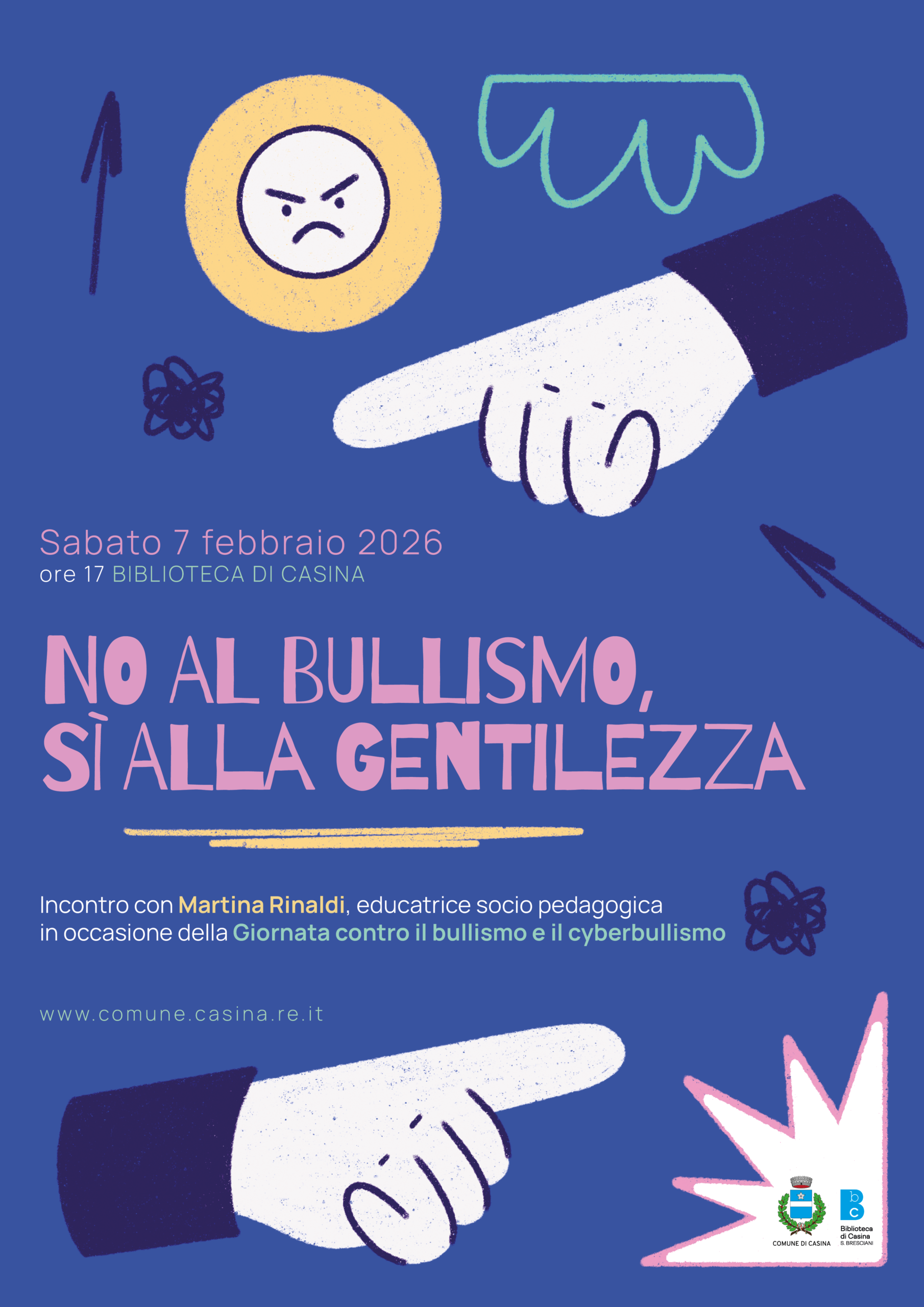 In occasione della Giornata contro il bullismo e il cyberbullismo, sabato 7 febbraio la Biblioteca di Casina ospita un incontro con l’educatrice Martina Rinaldi per riflettere su rispetto, relazioni e gentilezza.