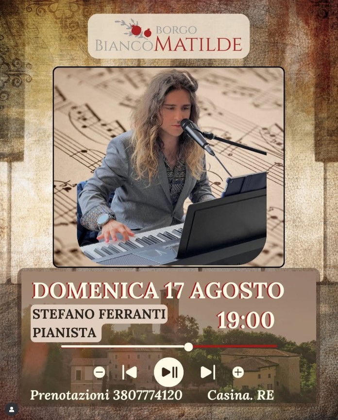 Sempre domenica 17 agosto, alle 19, il borgo accoglierà un concerto al tramonto con il pianista Stefano Ferranti, a cura del Ristorante Borgo Bianco Matilde: un’occasione per chiudere il weekend respirando bellezza fino all’ultima nota.