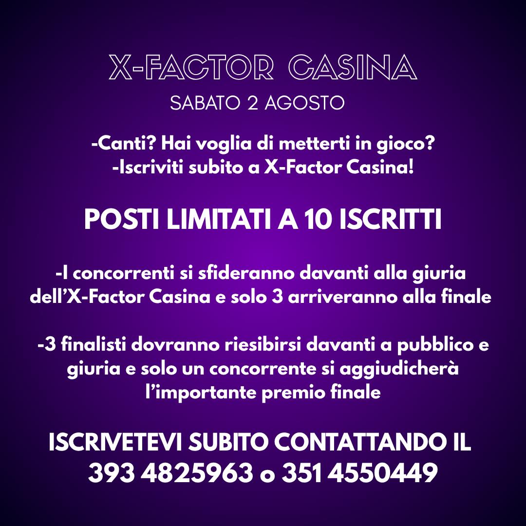 - ore 21, piazza Papa Giovanni XXIII - ZONA Peep - “Xfactor Casina” a cura di Cristiano Lugli