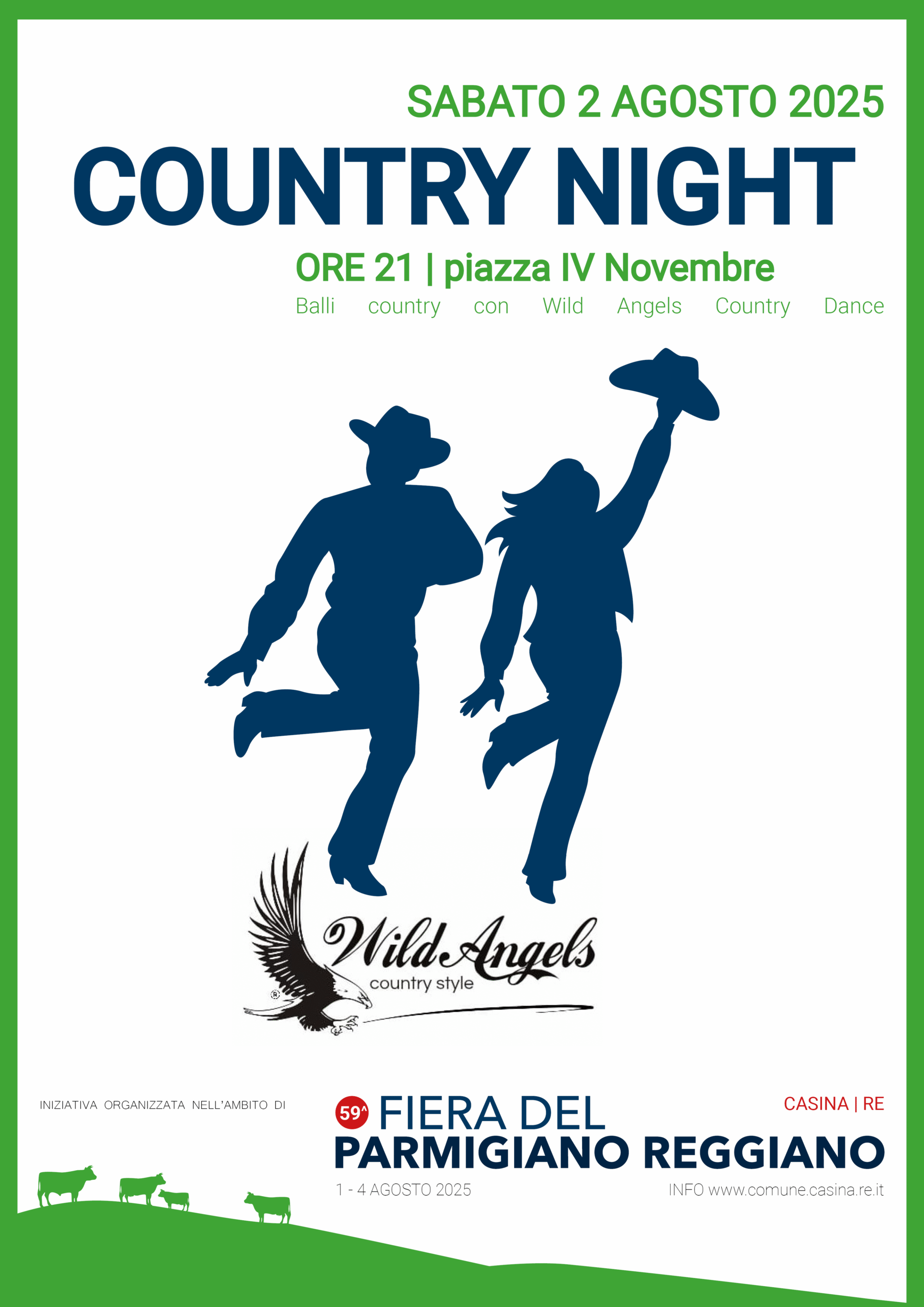 - ore 21, piazza IV Novembre - Balli country con “Wild Angels Country Dance”