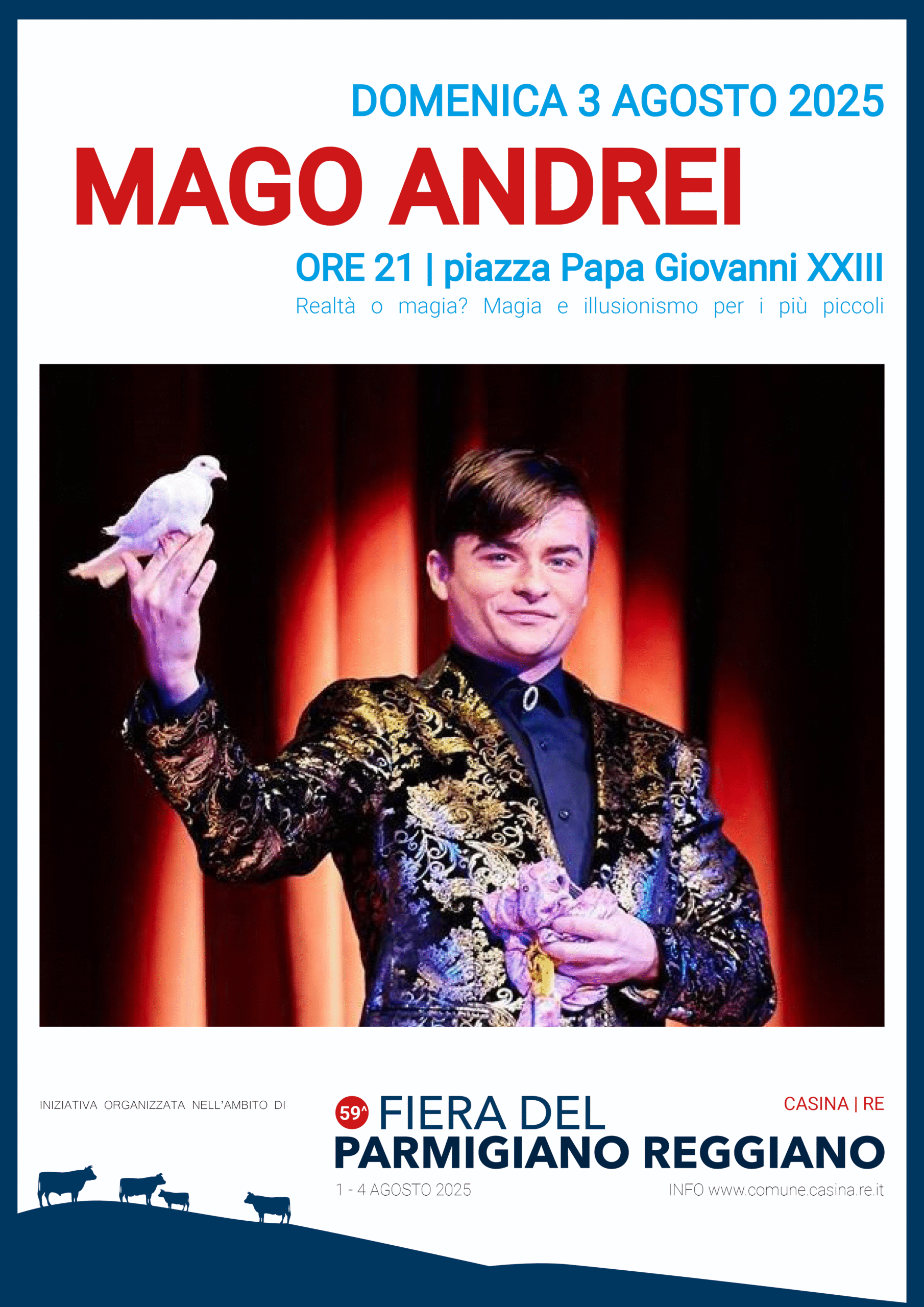 - ore 21, piazza Papa Giovanni XXIII - ZONA Peep - Magia e illusionismo per i più piccoli: “Realtà o magia?” con il mago Andrei