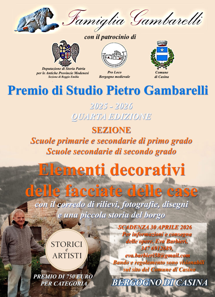 È indetto dalla famiglia Gambarelli, con il patrocinio della Deputazione di Storia Patria per le Antiche Provincie Modenesi – Sezione di Reggio Emilia, del Comune di Casina e della Pro Loco Bergogno Medievale.