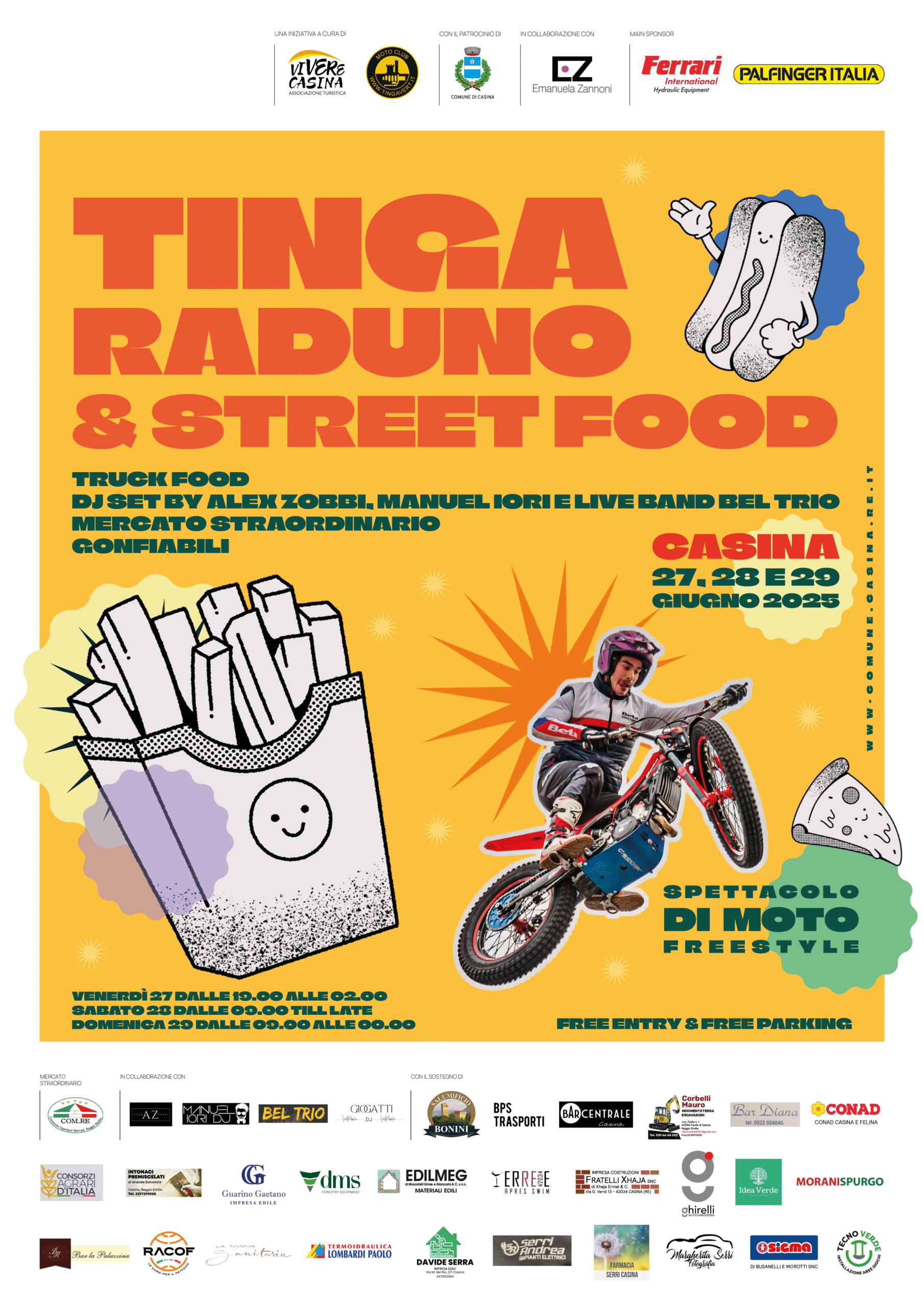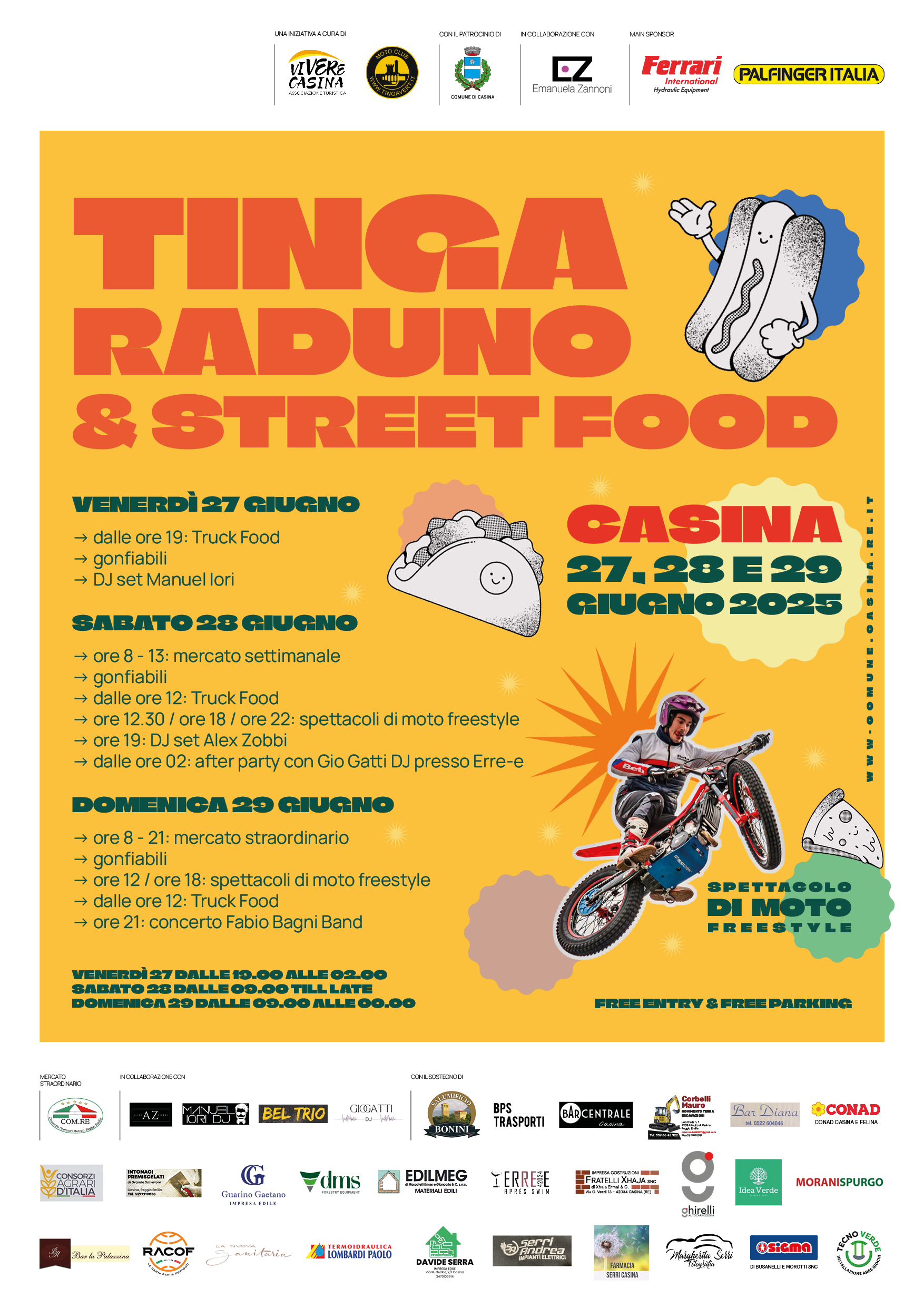 Casina si accende con il “TingaRaduno & StreetFood”: dal 27 al 29 giugno 2025 tre giorni di spettacoli, sapori e musica.